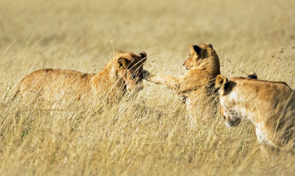 Young lions playing in the Masai Mara Game Reserve